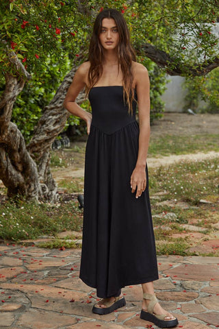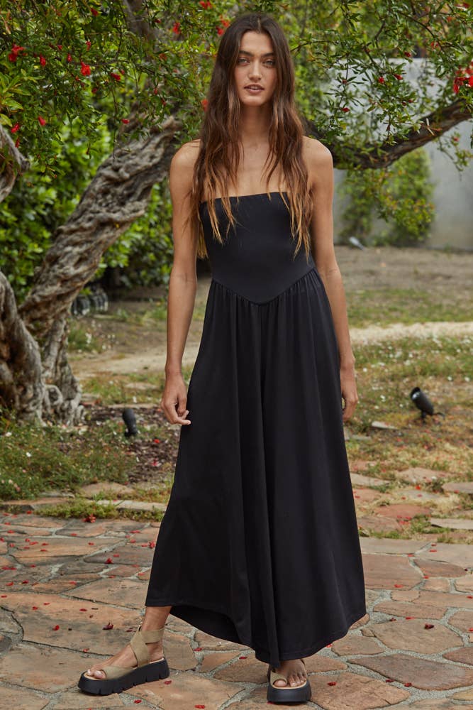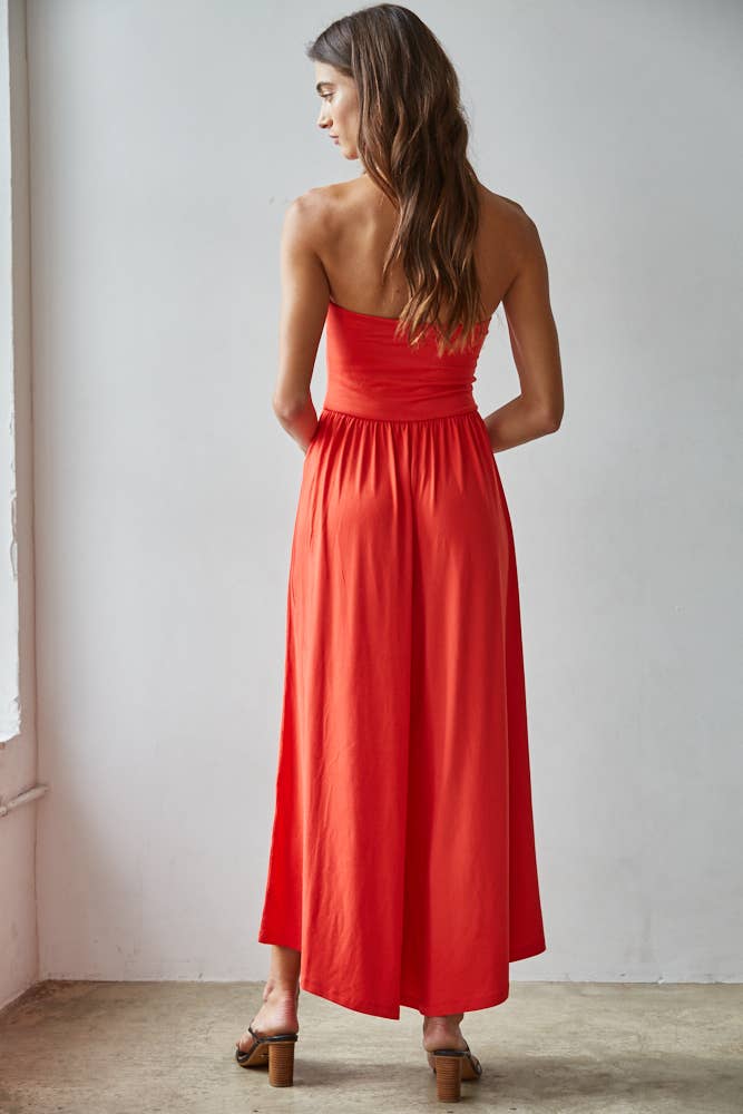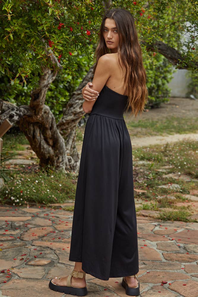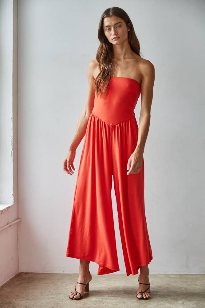 Knit Polyester Spandex Tube Strapless Flare Jumpsuit