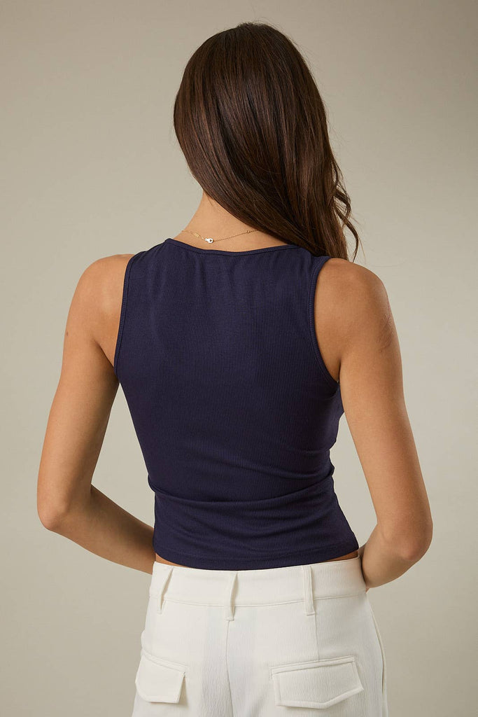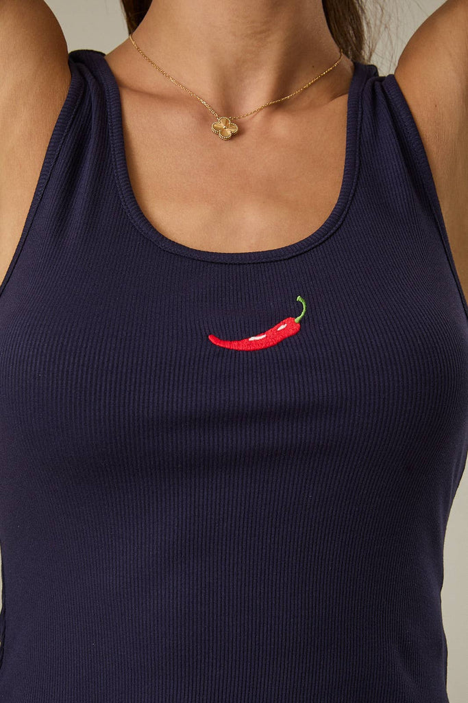 U NECK SLEEVELESS CHILLI EMBROIDERED RIBBED TANK TOP