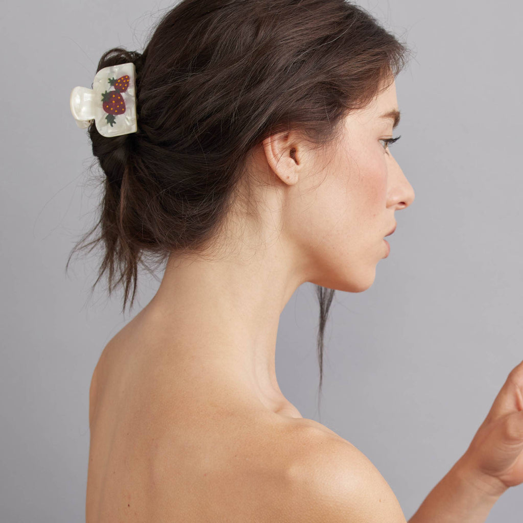 Add a touch of eco-friendly style to your hair with the Eco Strawberry Farm Handmade Hair Claw Clip. Made from 100% biodegradable cellulose acetate, this hair clip is a sustainable choice that's gentle on the environment.