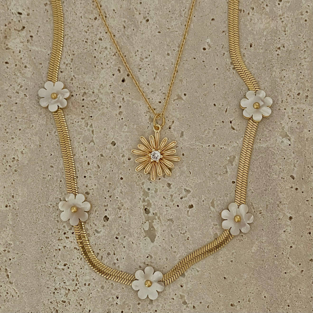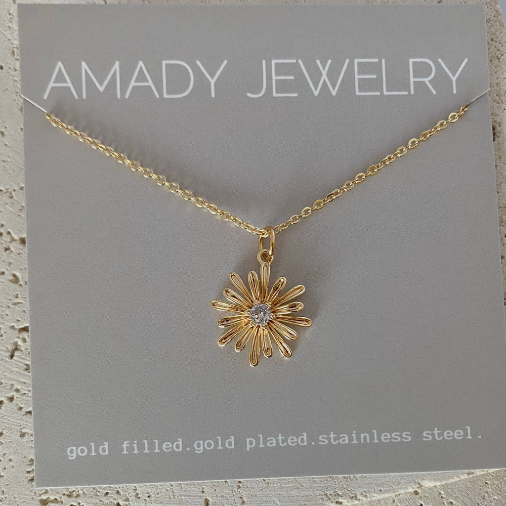 ⭑ Lovely gold plated daisy flower charm attached to a 18k gold filled chain. Water resistant/Waterproof.