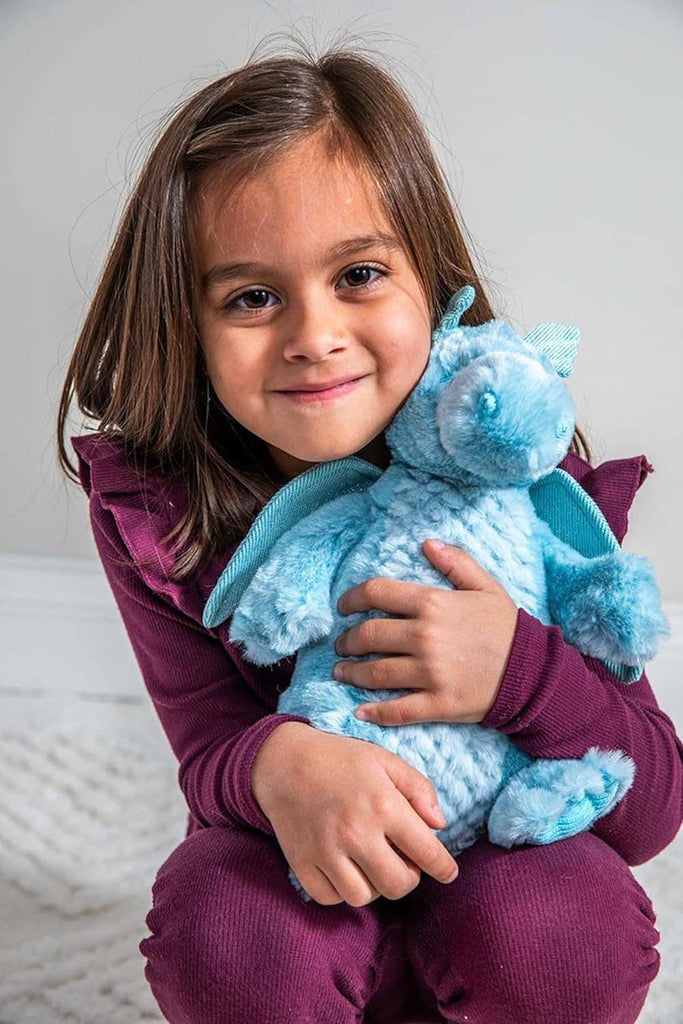 DRAGON SOFT TOY: FabFuzz Stardust Dragon is an enchanting, super soft multi-fabric friend in pretty light blues SIZED FOR HUGGABLE FUN: Measures approximately 13-inches tall CHARMING DETAILS With an irresistibly sweet face with embroidered lashes, Stardust is magical with a smooth fluffy blue body, a rub-able waffle weave tummy, and horns and wings with sparkly bling fabric MACHINE WASHABLE: Care for by washing in cold water on gentle cycle, air dry; soft toy made to strict quality standards to meet or exceed US safety requirements FABFUZZ FROM MARY MEYER: Sweet, huggable friends with special fabrics and details that let their charm and personality shine through