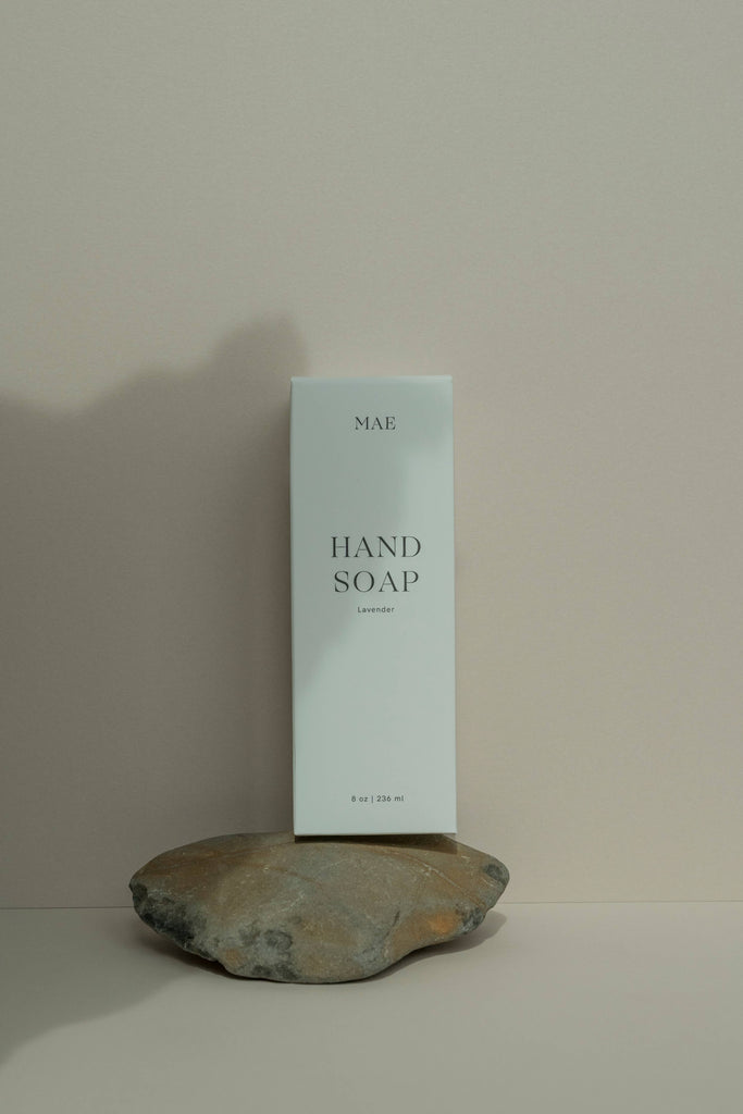 Made in small batches in Oregon’s wine country, MAE Hand Soap transforms a simple daily ritual into a moment of care and connection. Crafted with organic coconut, olive, and sunflower oils, this silky formula gently cleanses while replenishing the skin’s natural moisture barrier. Aloe vera soothes and hydrates, while rich shea butter leaves hands soft and nourished long after rinsing. Infused with pure, steam-distilled essential oils, each wash offers a refreshing, aromatic experience that uplifts the senses. Our vegan, palm-free formula reflects our commitment to sustainability and respect for nature’s balance. Thoughtfully poured into a refillable frosted glass bottle, this hand soap is as beautiful on your counter as it is kind to your skin. Lavender has been celebrated for its soothing, timeless scent—but MAE’s lavender is anything but traditional. Enriched with a hint of black pepper for depth and warmth, and brightened by a twist of lemon for a delicate citrus lift, this reimagined lavender strikes a
