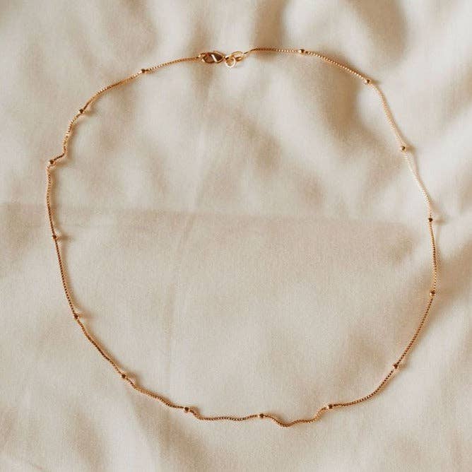 The Annie Satellite Necklace is the perfect piece to stack with other necklaces or wear as a stand alone accessory. She's 18k gold filled, tarnish and wear resistant, and made to last. Hypoallergenic and nickel free, this unique and dainty chain is the perfect accessory all year long. Available in 14", 16", 18", or 20" for however you choose to layer.