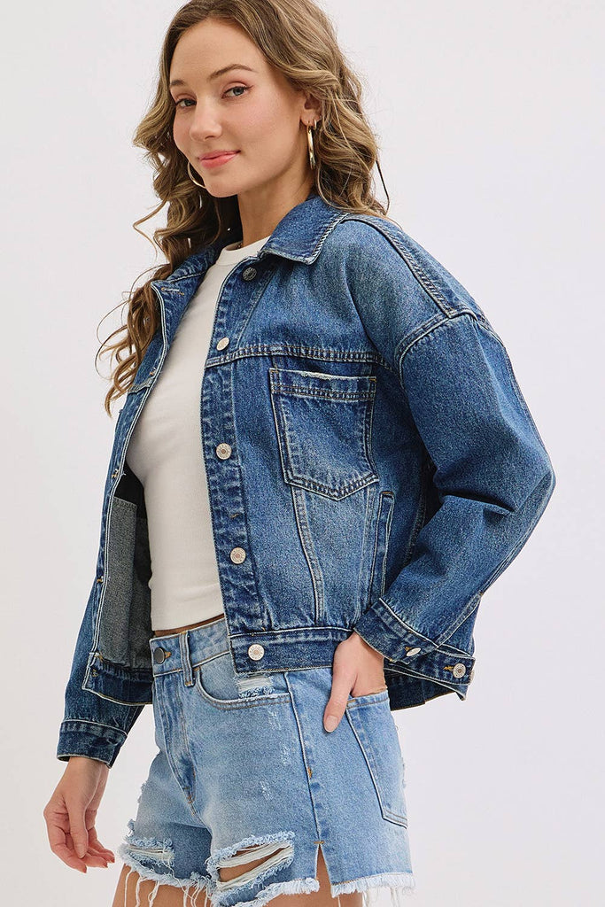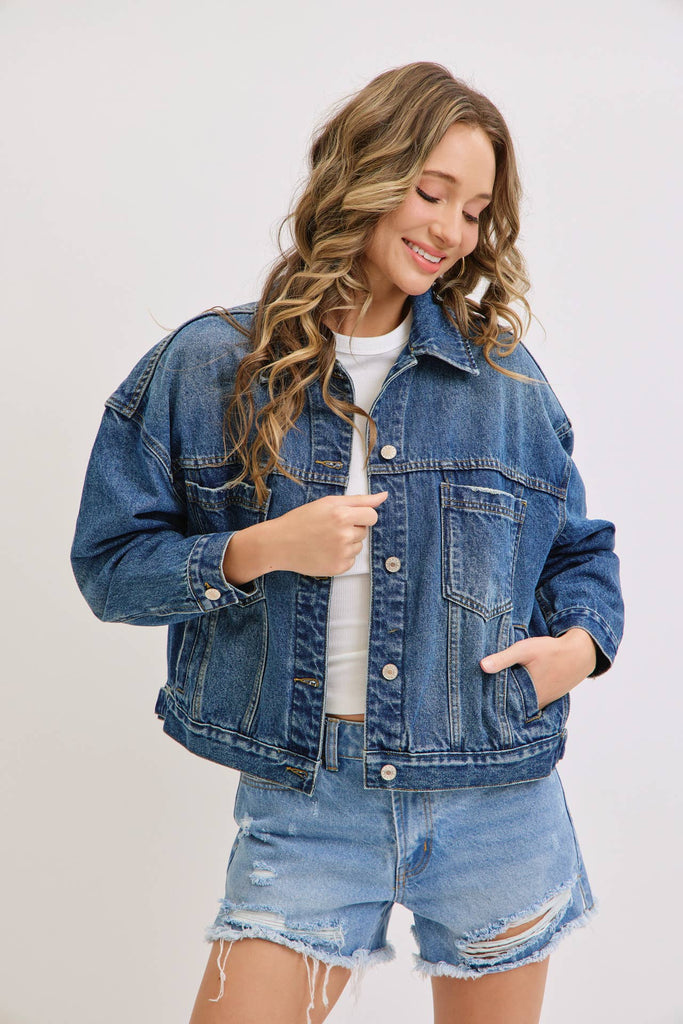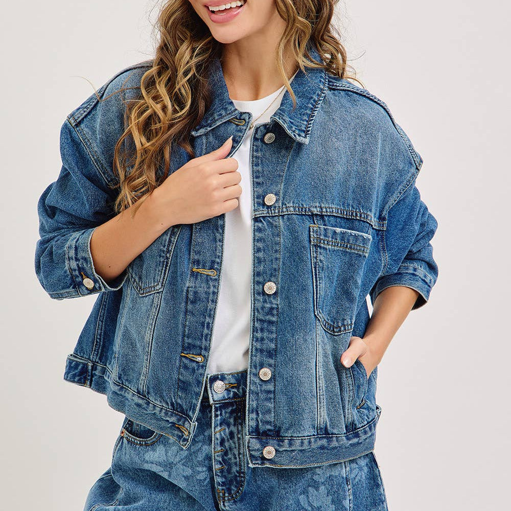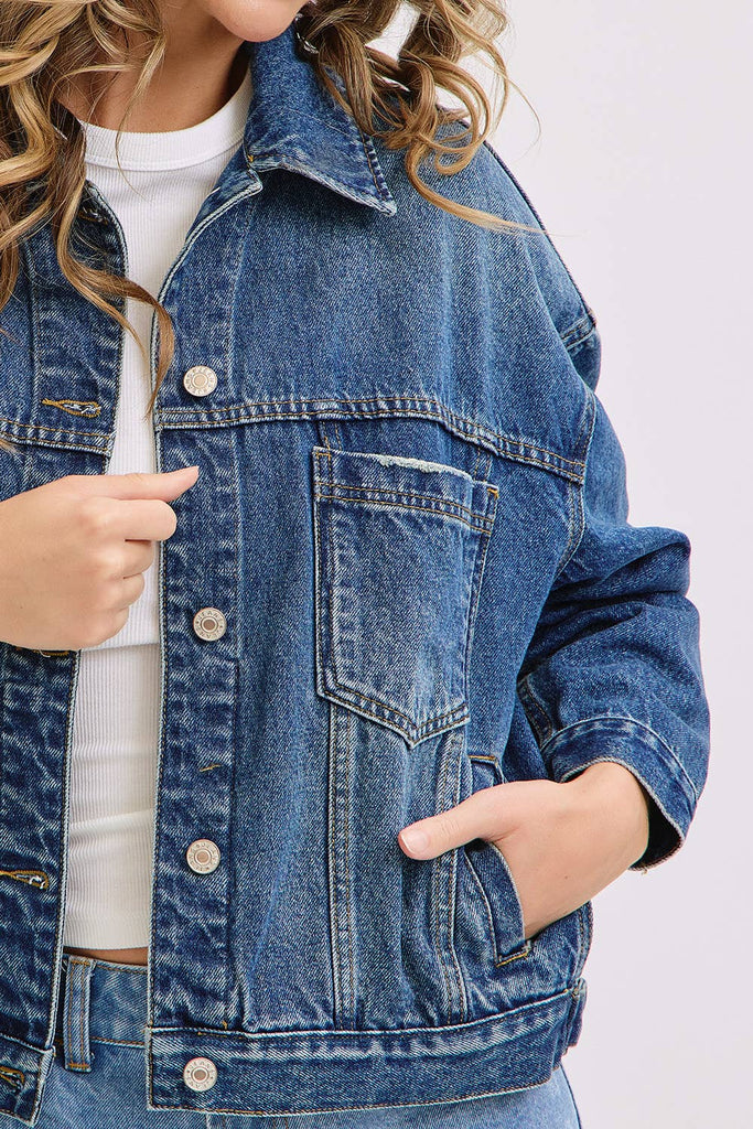 A timeless essential with a relaxed, modern edge, the Bree Denim Jacket is your go-to layer for everyday styling. Designed with a slightly oversized fit and classic button-front closure, this jacket offers that perfectly worn-in feel while still looking polished and put together.