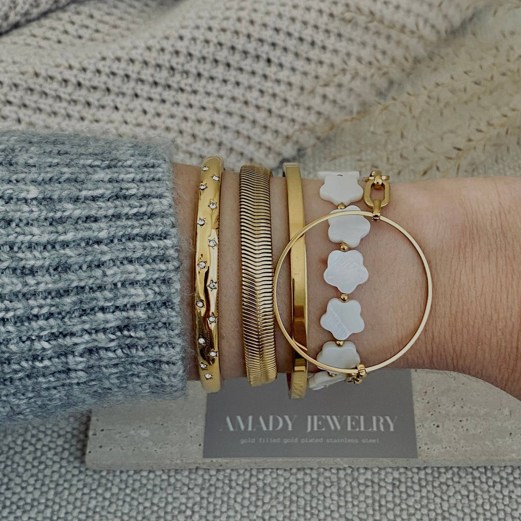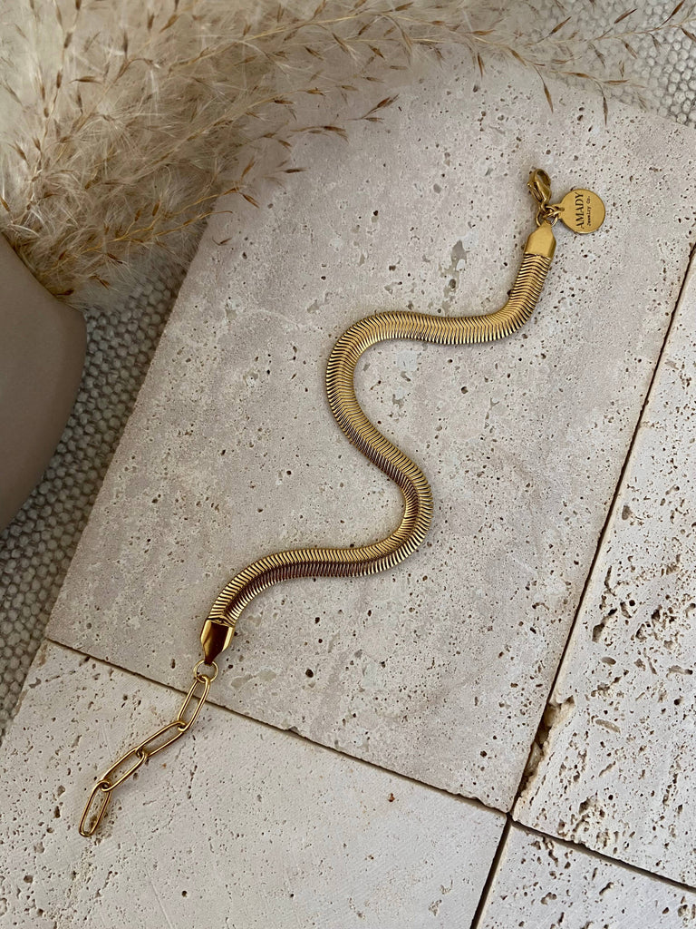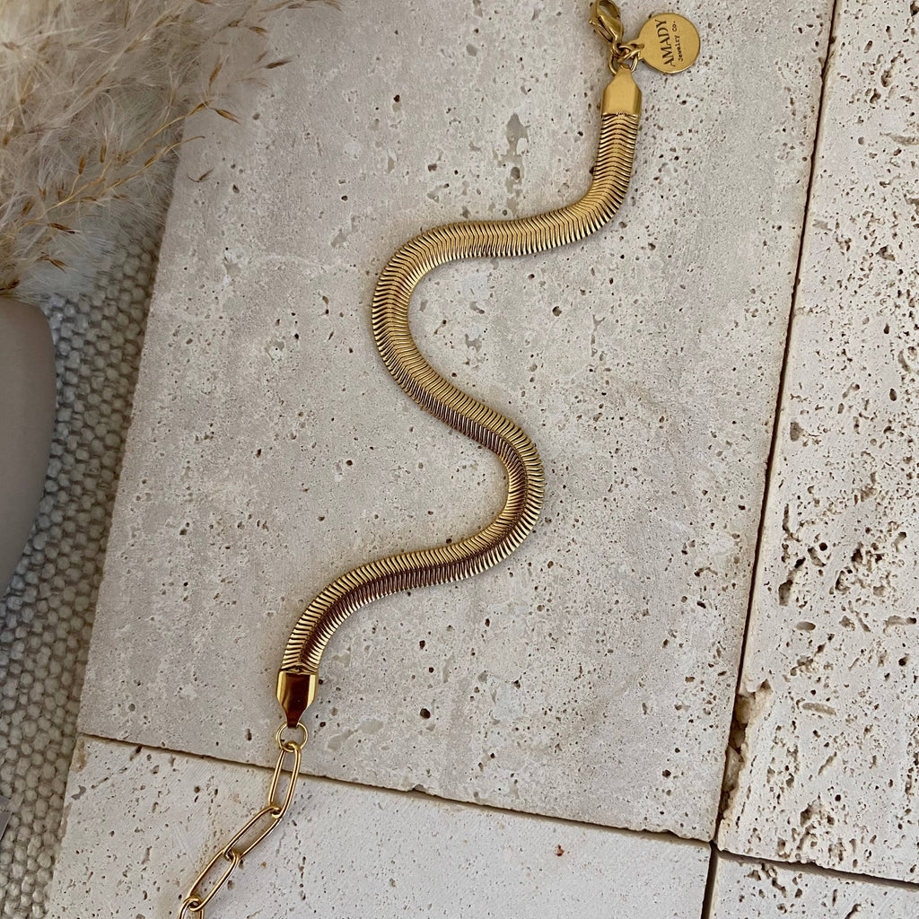 ♡ Herringbone Flat Snake chain 18K gold plated over stainless steel bracelet. The perfect addition to your collection! Great to stack with more bracelet or wear it by itself.
