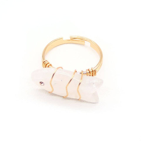 18K Stainless Steel Tarnish-Free Adjustable Fish style on a natural stone stainless steel Ring. Featuring a delicate fish with natural stone design, crafted from premium 18K stainless steel, it ensures a tarnish-free shine and long-lasting durability. The adjustable design provides a comfortable and customizable fit.