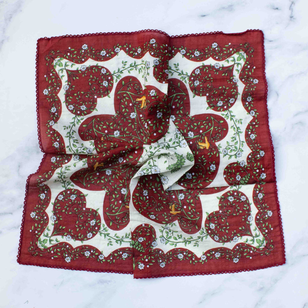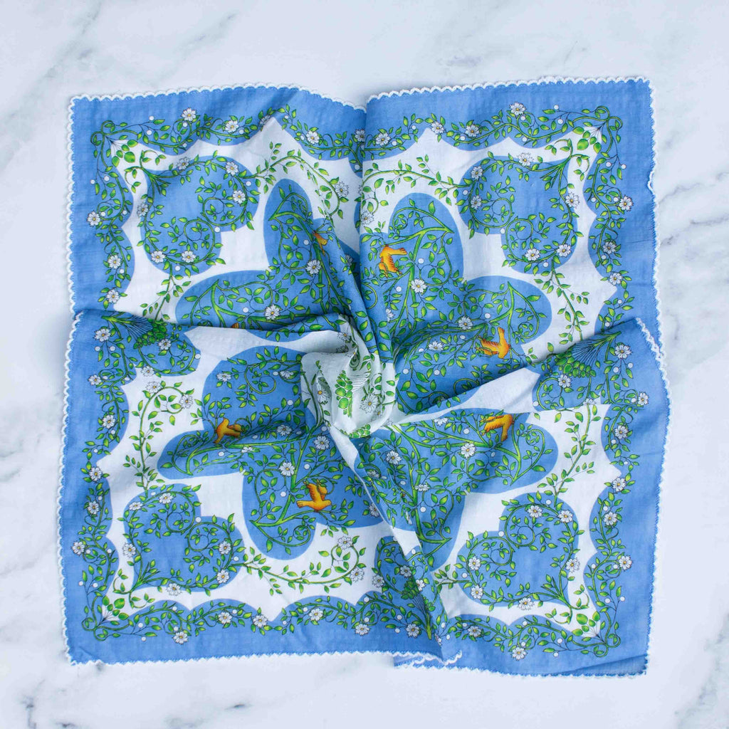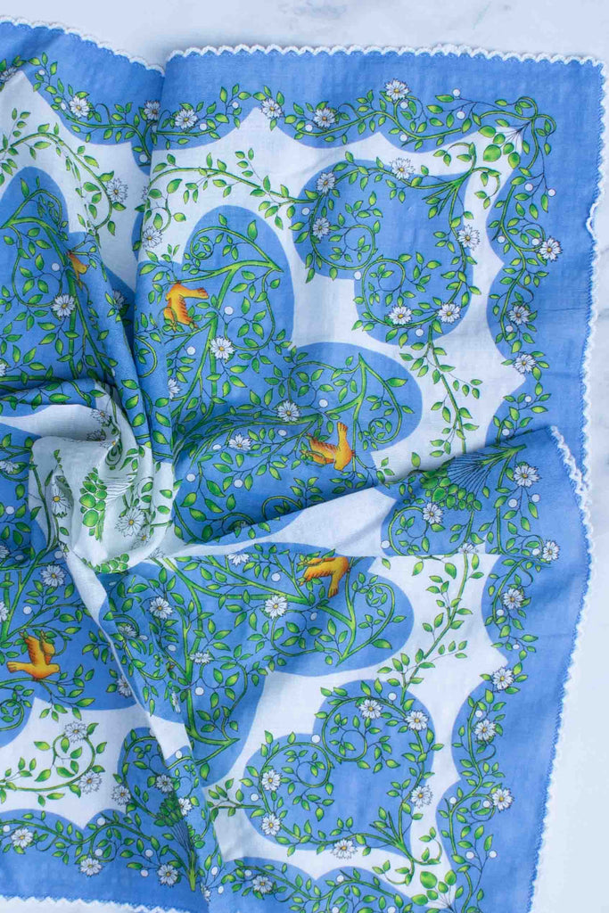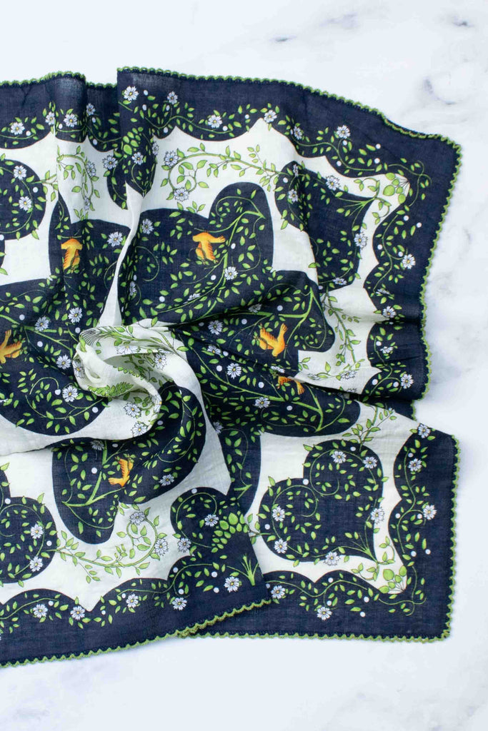 Bird & Vine Cotton Rayon Scarf – 21"x21" (55x55cm)