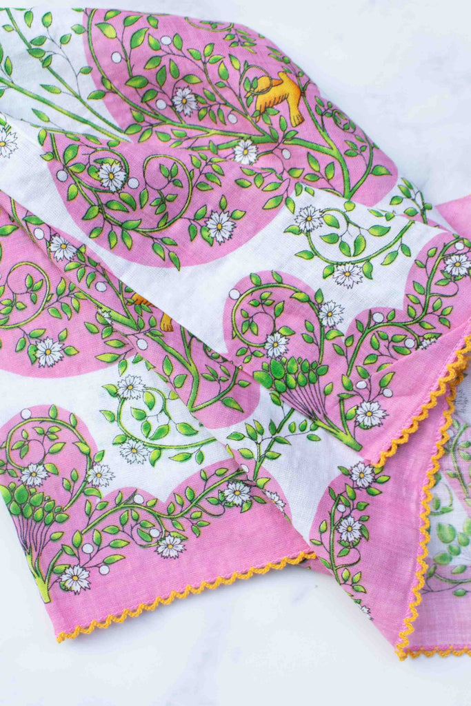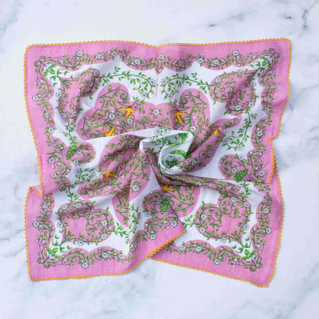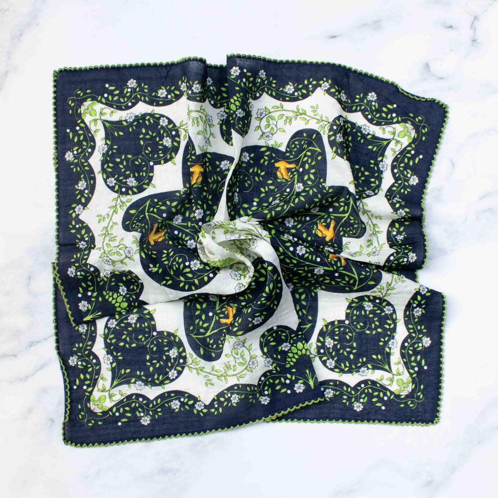 Bird & Vine Cotton Rayon Scarf – 21"x21" (55x55cm)