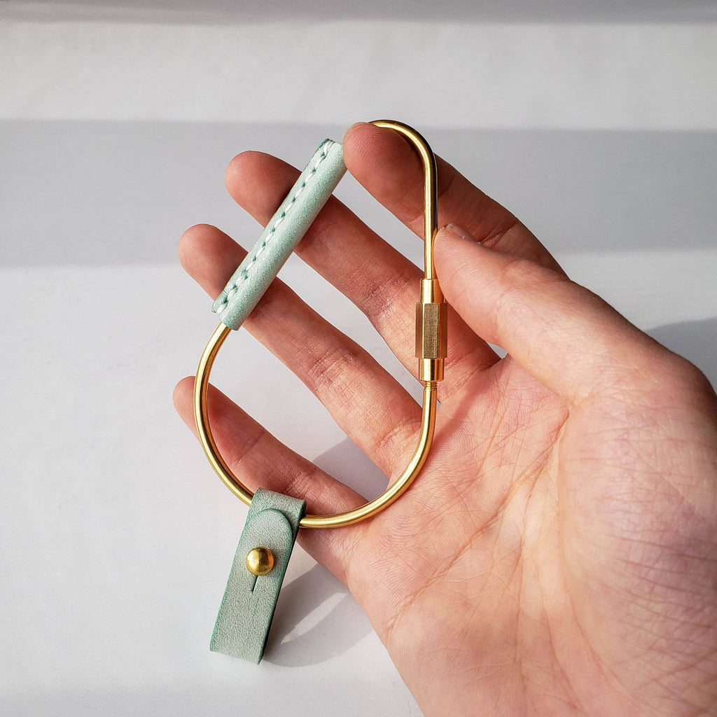 A chic and sturdy high-quality brass & leather carabiner that slips on and off plenty of keys with ease without tearing your nails.