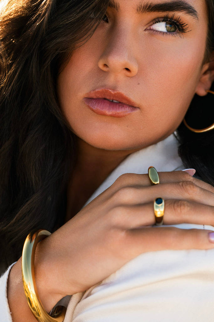 Materials: 18K Gold over Stainless Steel using a long-lasting PVD finish; waterproof, tarnish-resistant and hypoallergenic