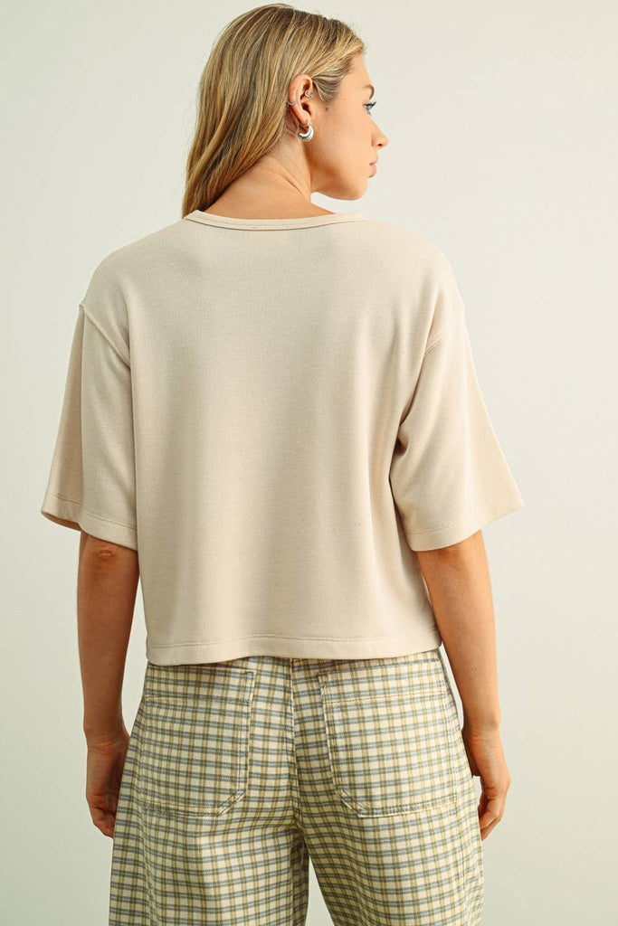 SOFR BRUSHED FABRIC SHORT SLEEVE KNITTED TOP * * Size & Fit * * * * * * * * * * * * * * * * Model is wearing size S Measurements taken from size S Height - 5' 7 1/2" / 175.3CM